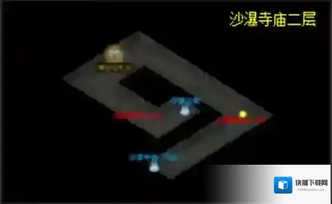 练级地图3:沙瀑寺庙2层(黄点、黄金挂机点),怪物为沙瀑雕像(Lv76)和沙瀑战将(Lv77)。