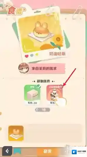 3、添加设施之后即可开始研发,按照顺序选择对应的食材。