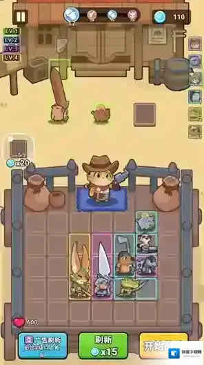 2、进入关卡后玩家可以选择初始英雄进行战斗,相同品质的英雄可以合并来提升等级。