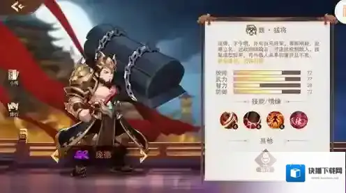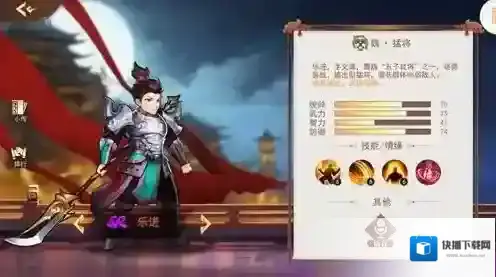 1、每个武将都有四个属性值,玩家可以根据角色数值来安排阵容和战场。