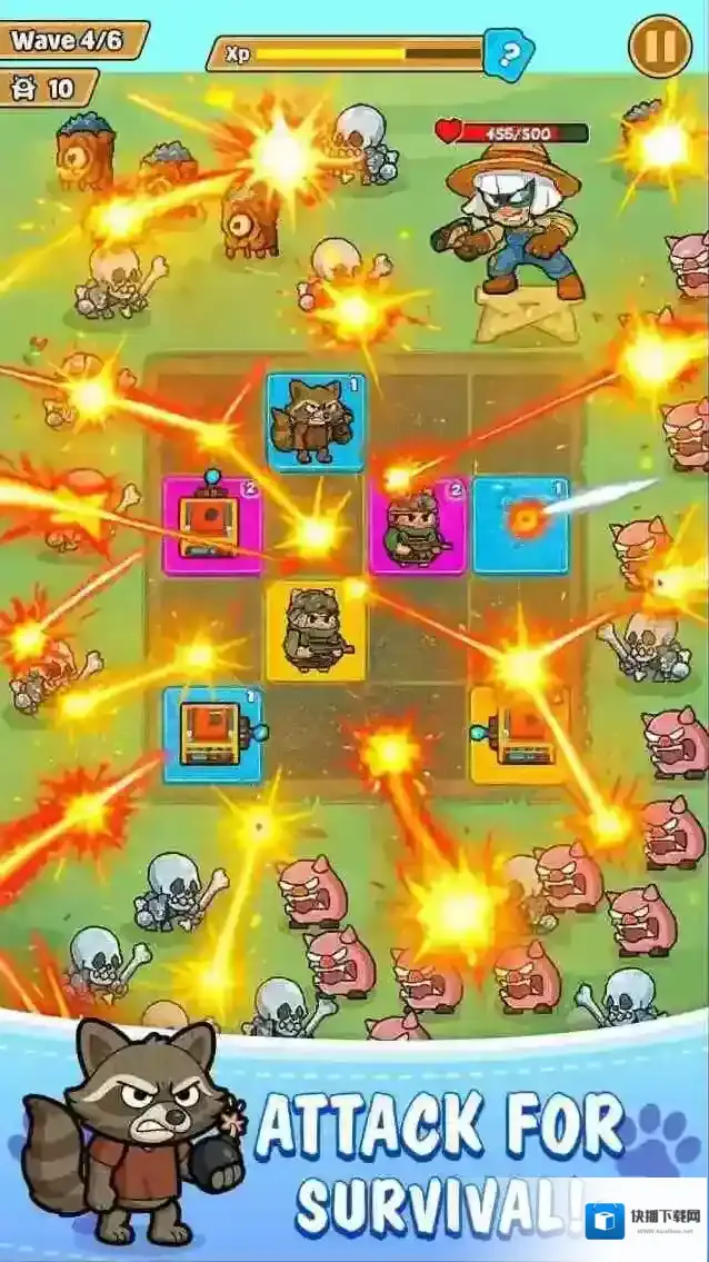动物防卫战,一款肉鸽塔防游戏,玩家将召唤不同的动物来消灭出现的敌人。在动物防卫战中有很多的角色可以自由搭配,丰富的阵容可以随意去选择,不同的组合会给你带来新的体验,更多的搭配会让你体验到不一样的乐趣,不断消灭更多的敌人来守护你的基地吧。