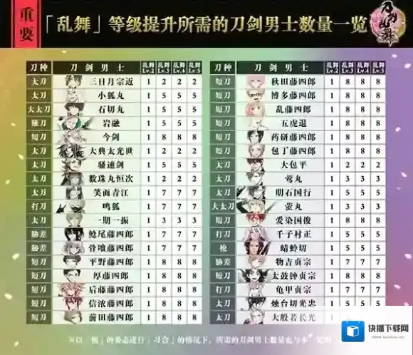 「乱舞」等级提升所需的刀剑男士数量