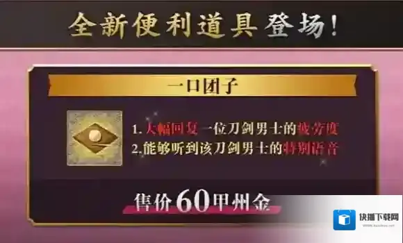 本次活动结束后,仍可在万屋购买一口团子,依旧可以使用道具一口团子恢复刀剑男士疲劳值,并听到特殊语音。