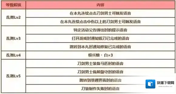 「乱舞」等级提升后,可以触发新的语音并了解到刀剑男士新的一面。