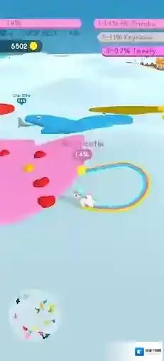 2、通过灵活的走位和策略的操作来圈出更大的领地,不断扩展你的颜色,赢下比赛获得丰富奖励。