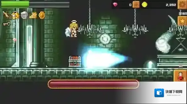 1、复古像素视觉:采用经典像素画风,细腻刻画角色与场景,骑士挥舞武器时的流畅动作、怪物受击后的夸张反应,以及城堡中光影变幻的细节。