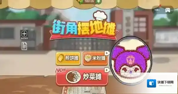 1、在街角摆地摊界面,选择摊位(如标有New的炒菜摊或煎饼摊米粉摊),开启对应经营模式。