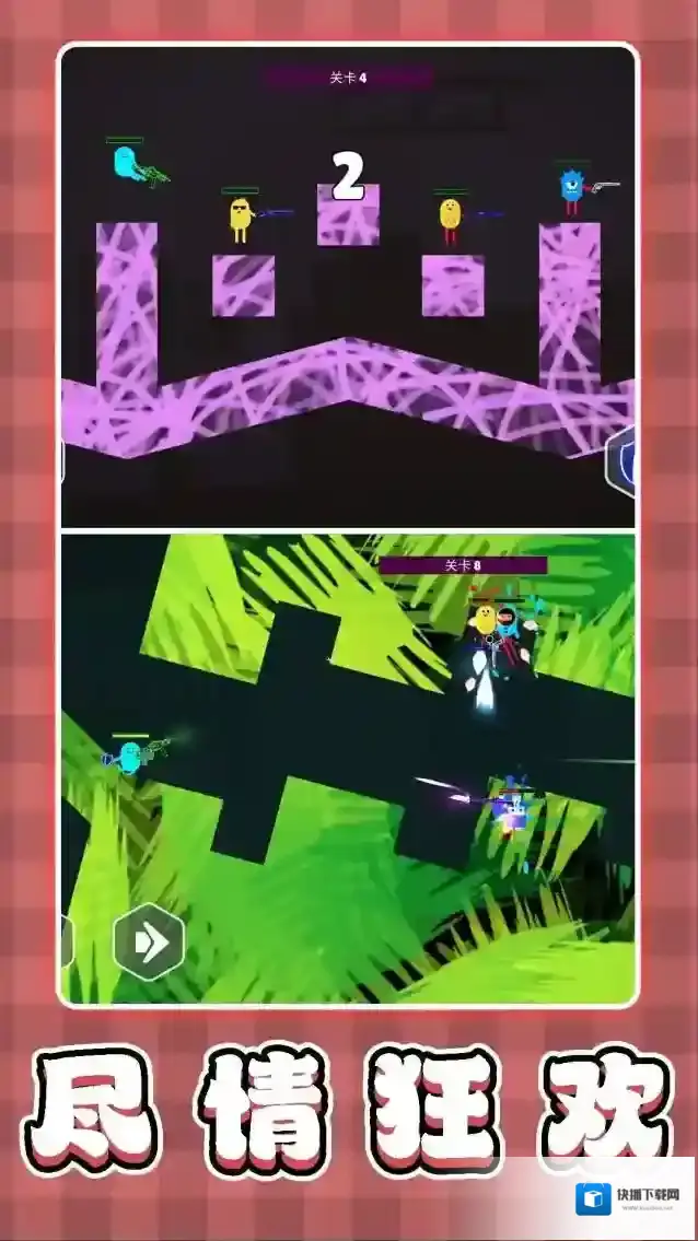 1、萌系视觉体验:采用萌系画风与缤纷色彩,打造愉悦的视觉盛宴,让玩家在轻松氛围中享受多人乱斗的乐趣。