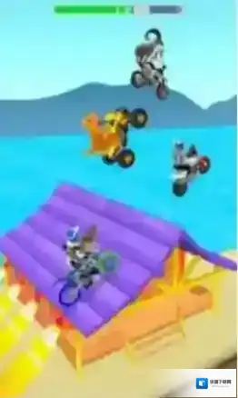 3、拟真物理引擎:模拟摩托重心转移、轮胎打滑物理规则,攀爬陡坡需控制油门避免后轮空转,飞跃平台时计算抛物线角度,碰撞障碍触发车身损伤反馈。