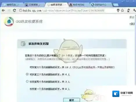 2、选择一个时间范围,提交恢复。非QQ会员可以选择恢复一个月、二个月及三个月内被删除的好友,QQ会员可以恢复六个月内被删除的好友。