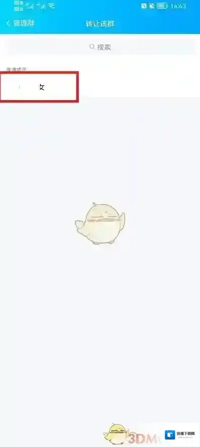 5、最后进入到转让群界面,就可以点击选择指定的好友获得群主。