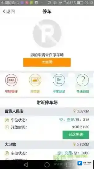 5、浏览附近停车场,智能展示出停车场信息和资源;