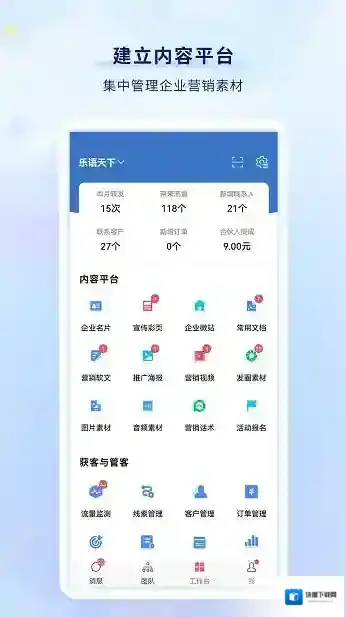 乐语是一款专为企业打造的移动拓客系统,集成了电子名片、企业微站、小程序、软文营销、红包营销、移动分销、客户管理、订单管理、移动支付等功能。