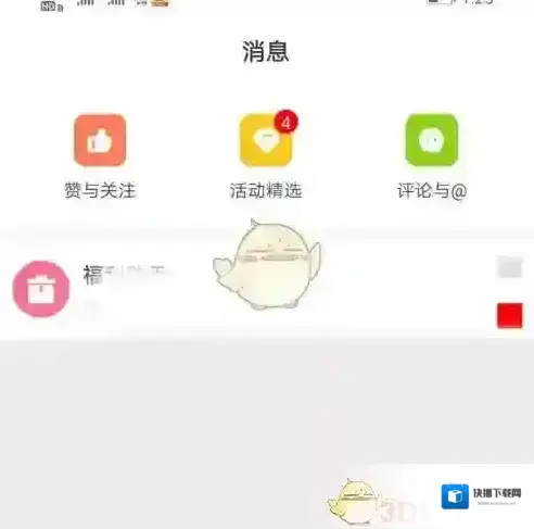 5、消息界面,顾名思义,就是其他用户或者官方给你发送信息,以及一些点赞、评论信息查看的地方。