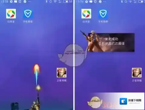 5.更换皮肤后的小火箭和悬浮窗效果如下: