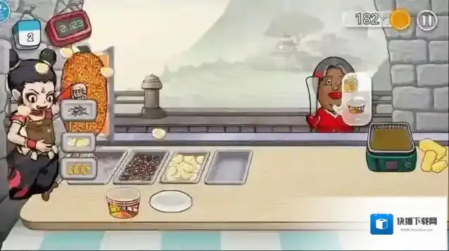 2、面对排队顾客,观察其订单要求,从食材区选取对应配料快速完成制作交付。