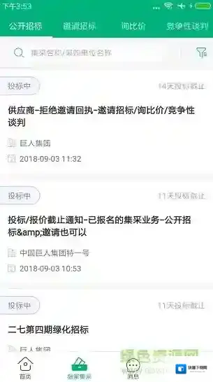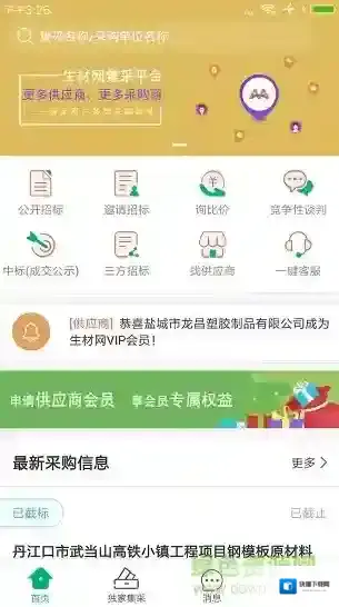 2、提供最新招标公告、中标公告、询比价、竞争性谈判、三方招标等招投标信息的查询;