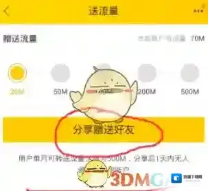 6、如果你流量够用,也可以将流量转赠给好友,如下图所示,但是要注意的是需要满100M才可以提取或转