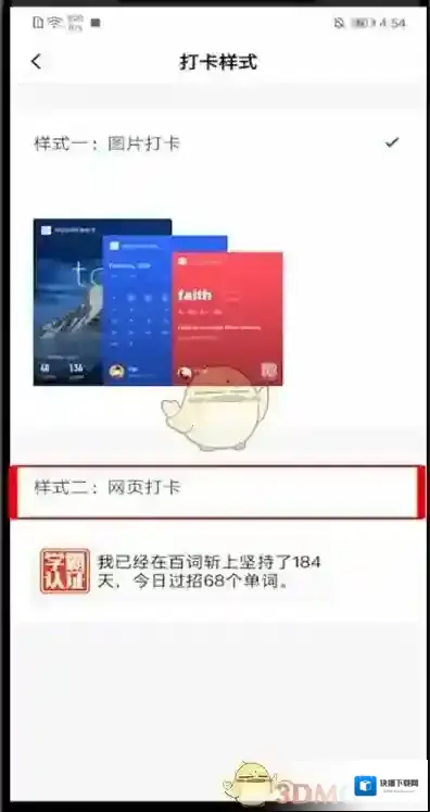 6、然后我们选择今日打卡的封面 ,可以选择海报、使用自己的照片做封面、日历、词句等等,选择好之后点击打卡;