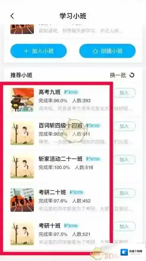 3、跳转页面可以看到很多学习小班,有不同名称;