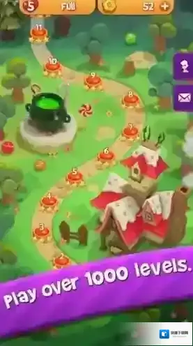 1、动态视觉盛宴:3D卡通渲染呈现果冻糖的Q弹质感、巧克力的丝滑光泽,消除时触发糖果雨与星光爆破特效,女巫释放魔法时的裙摆飘动与咒语光效,营造沉浸式甜美元宇宙。