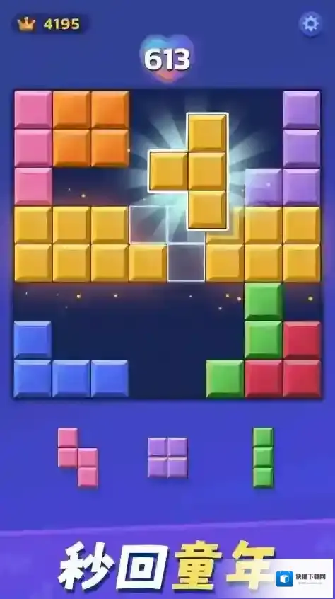3、每成功消除一组方块界面会显示得分,可持续拼接、消除,积累分数,挑战更高纪录。