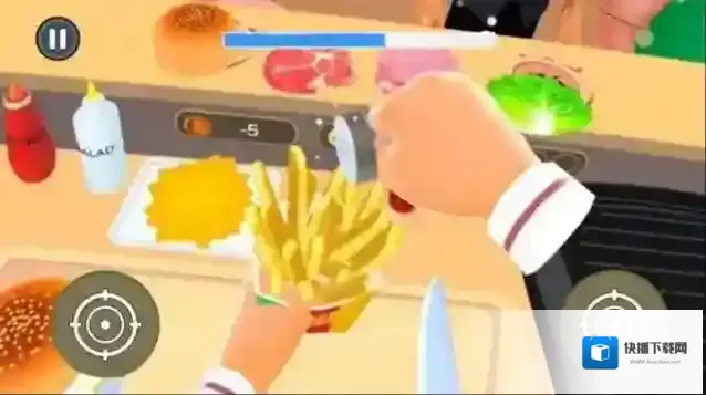 2、通过左右滑动屏幕控制移动方向,依据左右操作按钮,准备制作餐食。