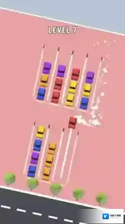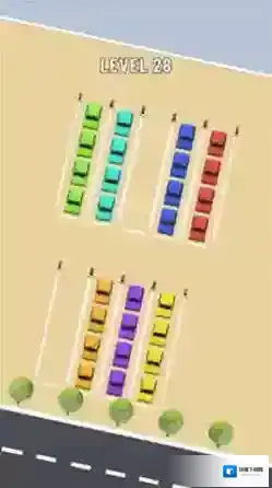 2、停车场颜色分拣任务:停车场停放着多种颜色的汽车,玩家需通过移动车辆完成颜色统一的停放目标,在混乱的停车场景中梳理秩序,感受分类整理的成就感。
