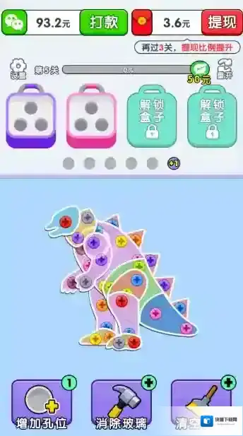 4、成功的消除所有螺丝后就能够顺利过关获得奖励了。