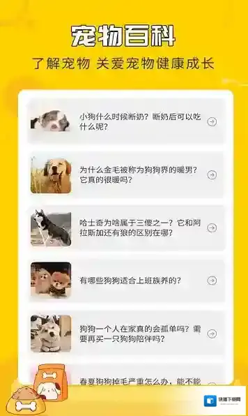 人狗翻译神器为了家中养有狗狗的用户设计的软件,可以在软件中和狗狗语音互译,使用增加人与宠物之间的感情,还有各种有关狗狗的知识百科,让主人更加了解自家的爱宠。
