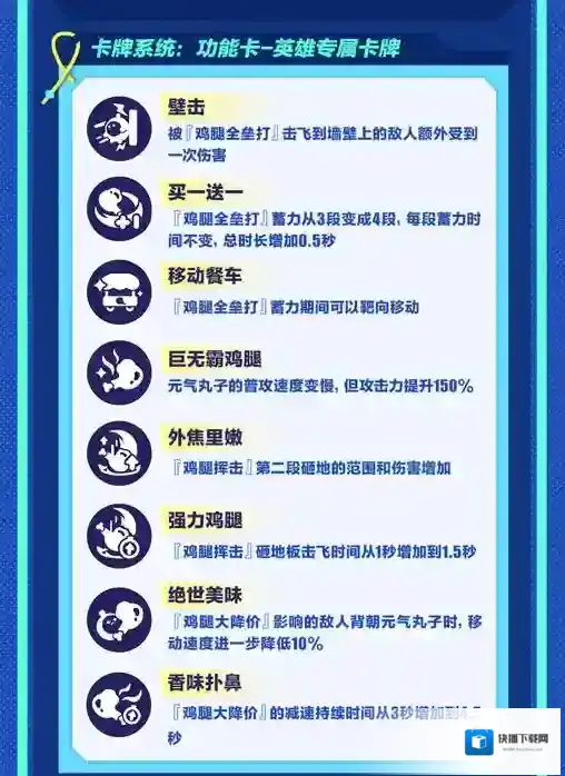 终极技能“鸡腿全垒打”超燃蛋仔“元气丸子”专属卡牌同步上新。在实战中,蛋仔们可以通过卡牌选择搭配出不同的战斗流派。如选择“强力鸡腿”大幅提升控制时间,搭配伤害强化类卡牌,一套丝滑连招令敌人抱憾离场;又或者选择“买一送一”最大程度提升终极技能伤害,通过满蓄力的爆发伤害将敌人一击送走。