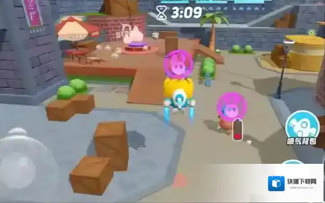 2、变成蛋翻滚的时候速度比较快,但是结束后会有眩晕效果,萌新玩家需要注意合理应用。还有一些比如拾取道具,用摇杆移动到道具位置就可以拾取,拾取道具之后可以看到跳跃键上方有一个道具按键,按住道具键能够进行瞄准,瞄准之后释放就可以使用了。