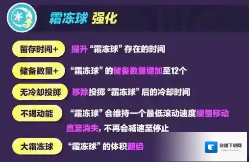 “霜冻球”强化方向除了技能上新之外,原有的部分技能也迎来了调整优化。更多精彩内容,敬请蛋仔前往对局亲自探索体验!