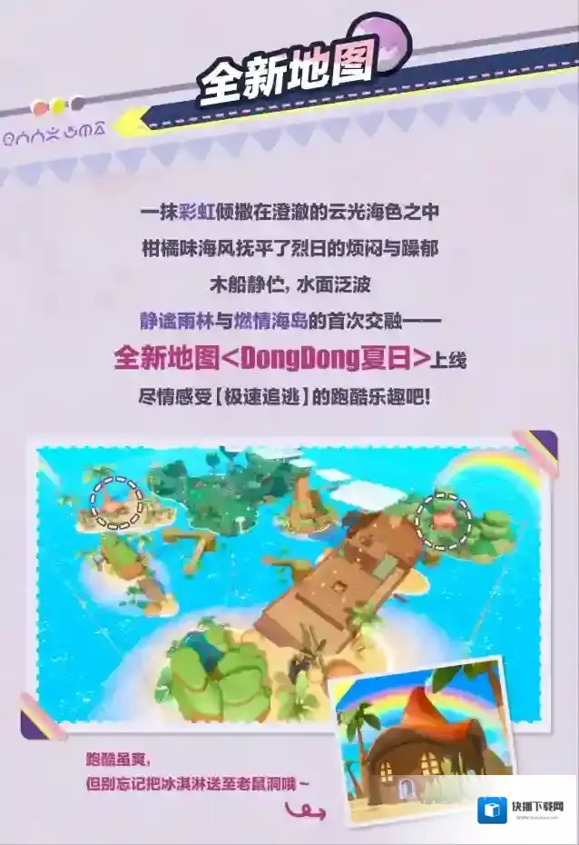 “蛋糕大作战”全新技能与地图登场海域上空惊现神秘城堡,蛋糕香气溢出围墙引来馋嘴蛋仔,然而未至深处,大门却悄然关闭……“蛋糕大作战”全新地图城堡正式上线!紫色雾气弥漫半空,心跳声音愈加急促,利用城堡纵横交错的地形与横亘的滑索,“你追我逃”的精彩剧目即刻开场,等待蛋仔亲自演绎!
