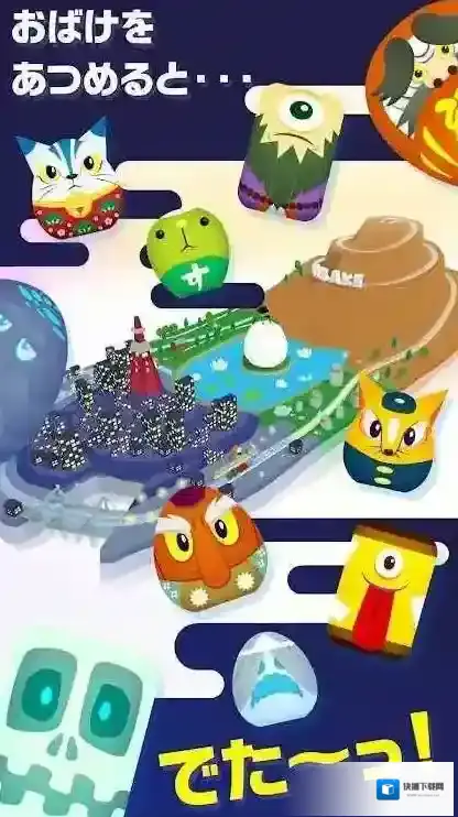 3、在场景互动界面,按照“おはけを-あつめると(收集妖怪)”的提示,点击箭头指向的区域,收集妖怪等元素,触发“でた~ん!(出现啦!)”的效果,推进游戏进程。