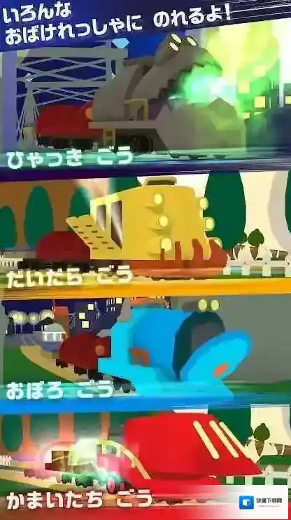 2、在火车选择界面,根据箭头指向,选择下方的蓝色火车(おぼろ-こう(胧号)),进入相关游戏环节。