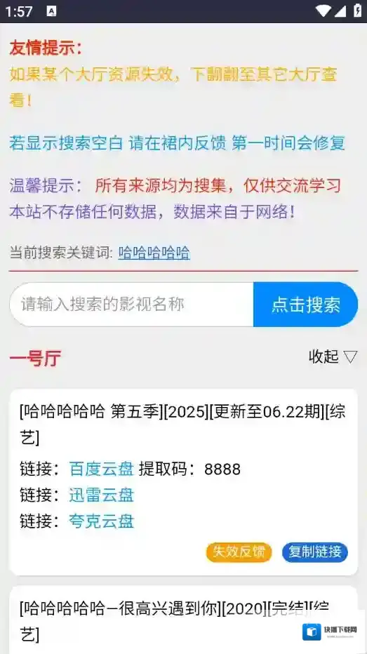 3、用户直接在网站上搜索关键词,即可快速显示各个网盘的影视资源下载链接和提取码,操作方便快捷。</p
