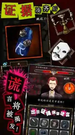 2、谎言会议是游戏的核心玩法之一,玩家要依据手中的证据,与自己认定的 “说谎者” 展开激烈的辩论,通过巧妙的言辞反驳对方,逐步瓦解其谎言,展现自己的推理成果。