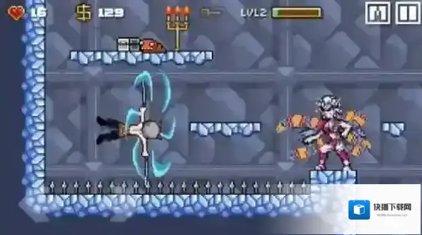 1、闯关战斗操作:操控角色在关卡中与怪物展开格斗,通过按键进行攻击、跳跃与防御,躲避陷阱并击败了所有敌人,完成关卡的挑战。