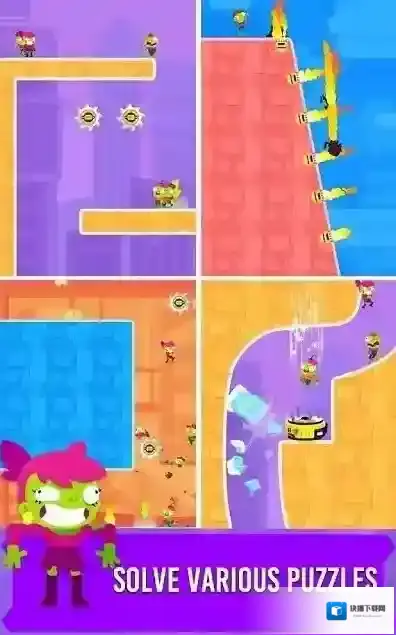 1、机关陷阱设计:各场景含多种互动机关,如实验室的旋转齿轮,工厂的喷火装置,考验反应与操作能力。