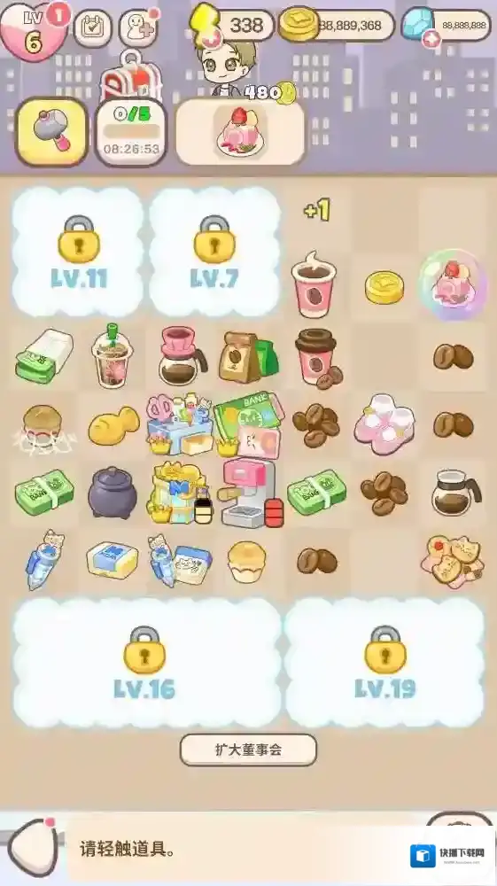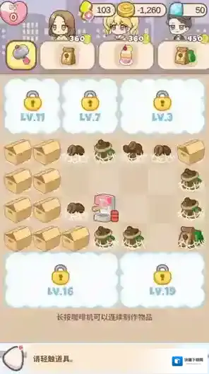 2、点击咖啡机可以获得各种物品,两个相同的物品可以合成更高的等级。