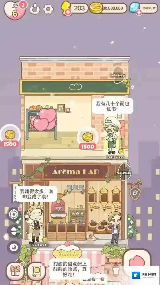 5、当一个店铺升级满后会解锁新的店铺,同时也会有新的剧情出现。