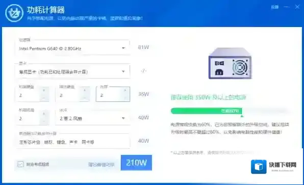 第二步,进入到功耗计算器界面当中后,根据自己的实际情况,来对处理器、显卡、机械硬盘、固态硬盘、内存、机箱风扇、水冷、我会考虑超频等参数进行选择和设置。