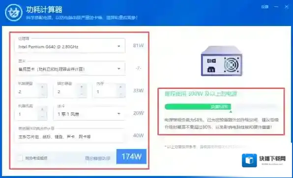 最后,在界面的右侧,我们就可以看到设备的功耗信息并显示合计功耗估算值。