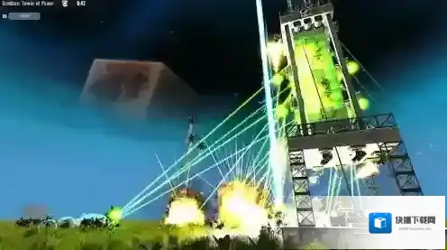 3、挑战“Tower of Power”,操控单位发射绿色激光(箭头指向),集火建筑目标,破坏敌方塔防,阻止能量光束,获取胜利。