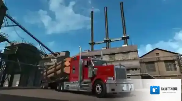 3、抵达工厂,沿路线精准停车,完成木材交付,借工厂场景熟悉卡车装卸、运输全流程。