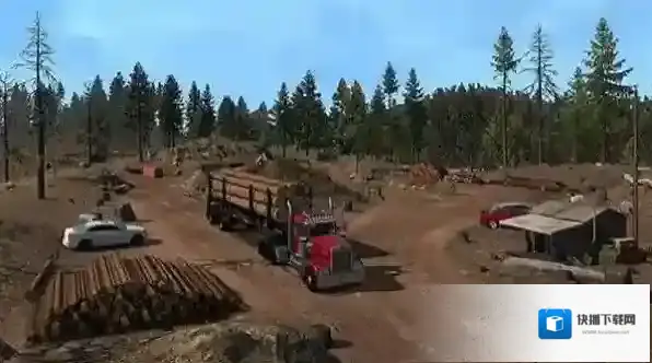 1、驾驶红色运木卡车,在林场土路行驶,避障碍、其他车辆,稳运木材,适应越野路况。