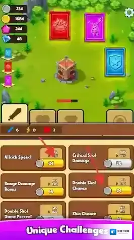 1、强化属性提升伤害:可通过强化属性对敌人造成更多伤害,属性的提升是永久生效的,玩家能根据战斗需求自由增加,这种持续成长的设定让塔的防御能力不断增强。