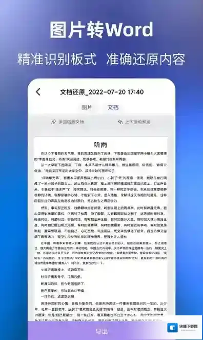 文字提取支持识图取字,通过智能扫描取字和字体识别,提取图中文字,还原文档样式