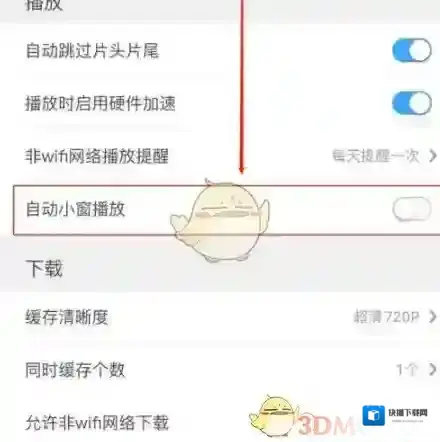 3、最后在设置界面点击“自动小窗播放”关闭即可。